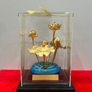 Sản phẩm Cây Sen Mạ Vàng là những mẫu cây được Duongquanghagold chế tác từ nguyên liệu phôi là đồng hay composite sau đó được mạ vàng 24k điện phân hoặc dát vàng bề mặt. Những chi tiết sau khi hoàn thiện sẽ được ghép lại thành cây Sen hoàn chỉnh sau đó được đặt trong chậu. Sản phẩm hoàn thiện sẽ có chân đế, hộp mica, hộp quà tặng và túi đựng sang trọng.