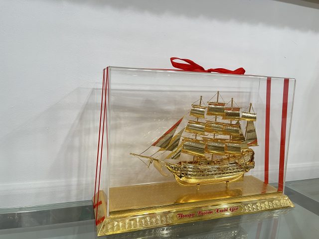 Mô hình thuyền buồm dát vàng 24k tặng ai? Nhân dịp gì?